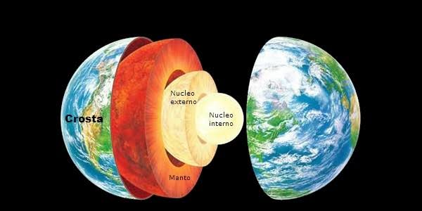 A estrutura da Terra está constituída por três partes principais: crosta terrestre, manto e núcleo (externo e interno).